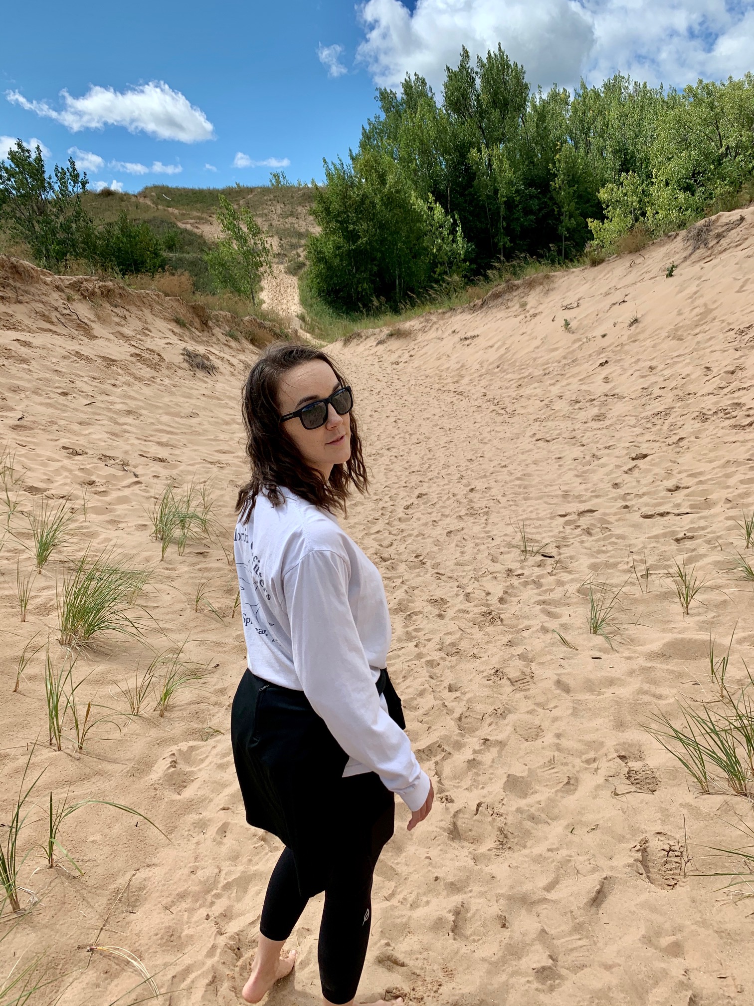 Our only planned hike for the trip was at Sleeping Bear Dunes National Lakeshore, about an hour and a half away from our campsite. We drove through a few kitschy up-north towns on the way. The types of towns that are bustling for three months a year and make you wonder who lives there the other nine.