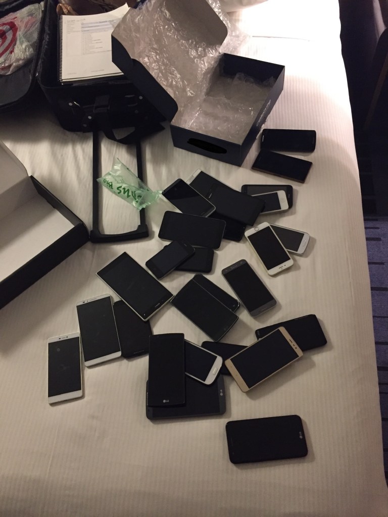 Part of one audit required me to carry over two dozen smartphones through airport security in my luggage. While not illegal, I was definitely stopped and questioned by TSA as they swabbed my bags for explosive residue: