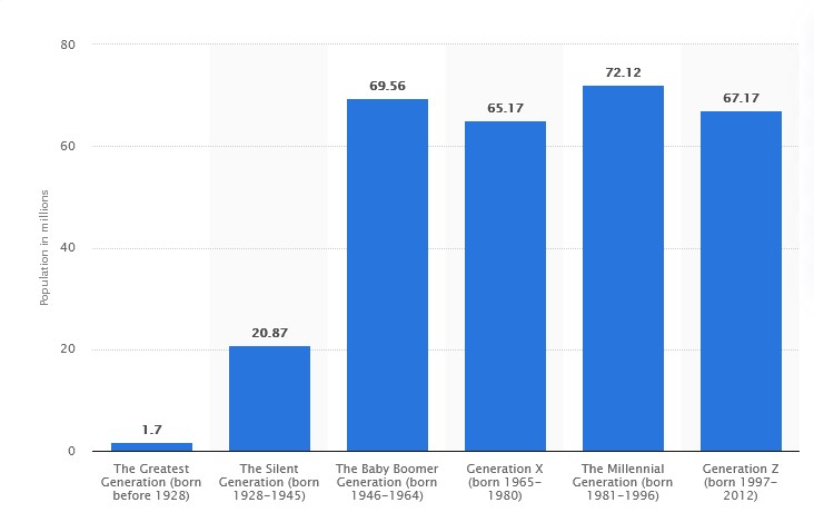 According to Pew Research, “With immigration adding more numbers to this group than any other, the Millennial population is projected to peak in 2033, at 74.9 million.”