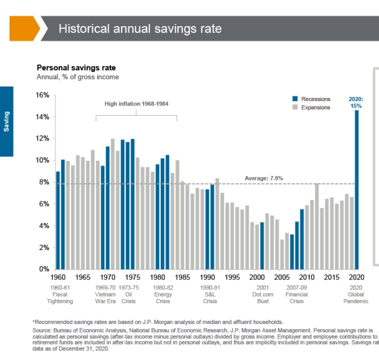 According to J.P. Morgan, the savings rate of those in the US is at record levels: