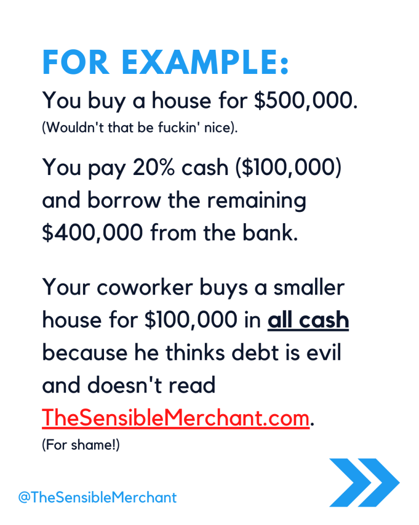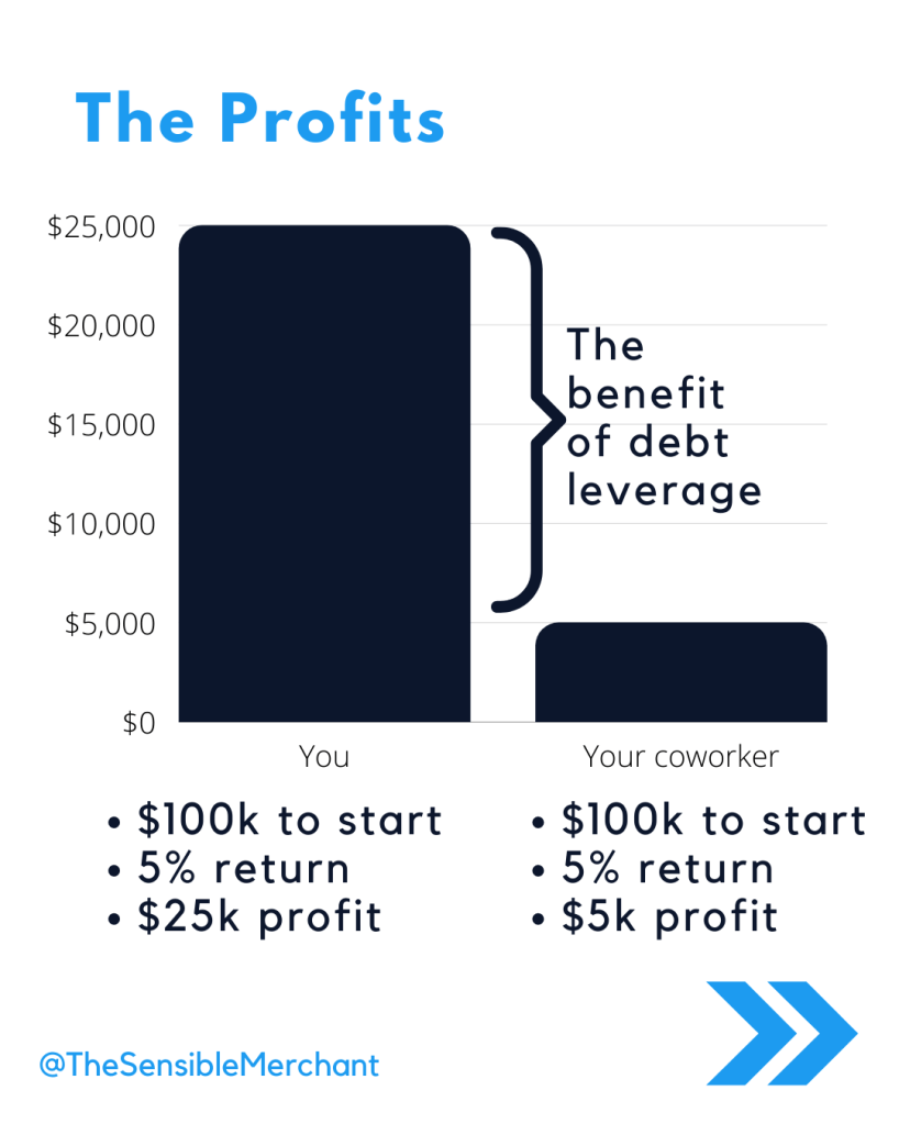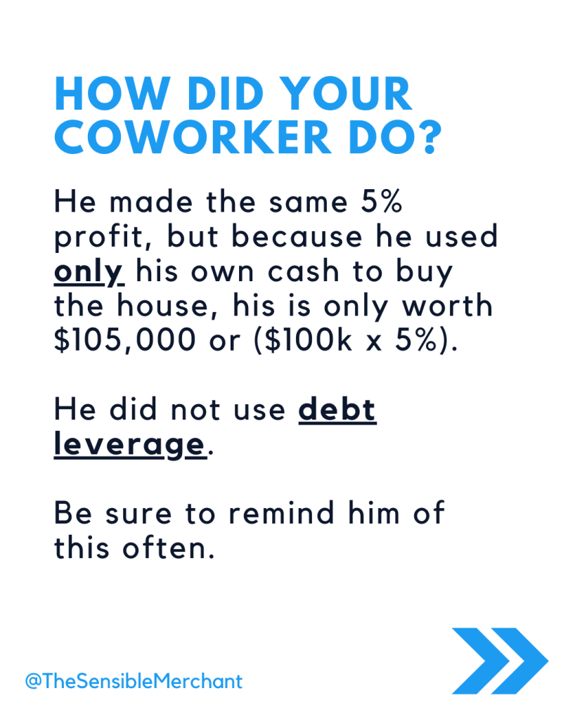 Lastly, I’ve created this fun little slideshow starring you and your idiot coworker to demonstrate the power of debt leverage when applied to purchasing your own house, an office space you will lease out, or an entire apartment community: