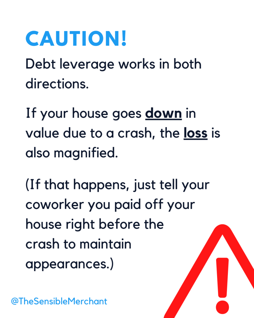 Big crashes in the housing market are actually quite rare so we are going to set that scenario aside. Real estate is cyclical but it is generally not volatile. Besides, risk is the price you pay for returns. If there were zero risk, you’d get almost no return, like your savings account at the local bank.