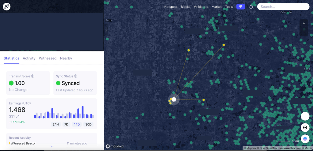 So, if I upgrade my antennae, or put it on my roof instead of on a window sill inside, I can get more HNT on a daily basis. In this way, the earnings vary from hotspot to hotspot but the entire network is decentralized enough that no one bad connection can bring it down and the opposite actually occurs, individual users try to make the best connections possible.