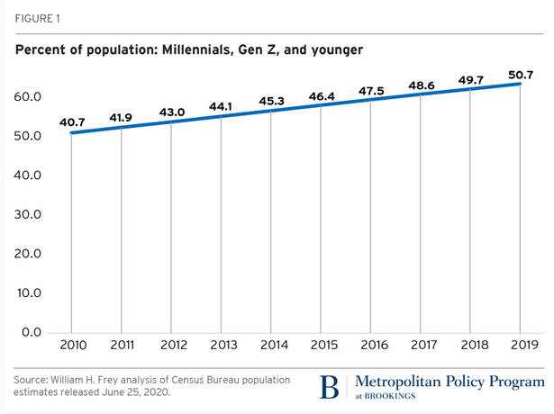 In 2019, something very important happened. The percent of people in the Millennial and younger generations (Gen Z and the yet-to-be-named Gen) crossed 50% of the entire U.S. population for the first time. Why is this important?