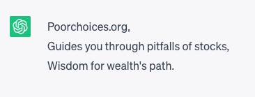 Subscribe below to be notified of each monthly article from http://www.poorchoices.org: