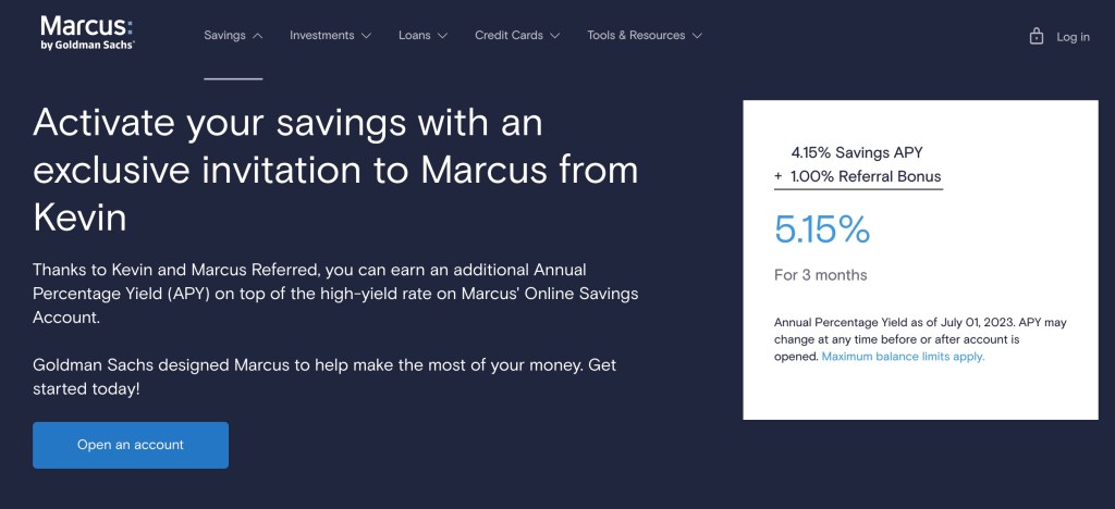 And if you use my referral code, you can earn an additional 1% on top of what Marcus Goldman Sachs normally pays for the first 3 months and I get the same benefit: