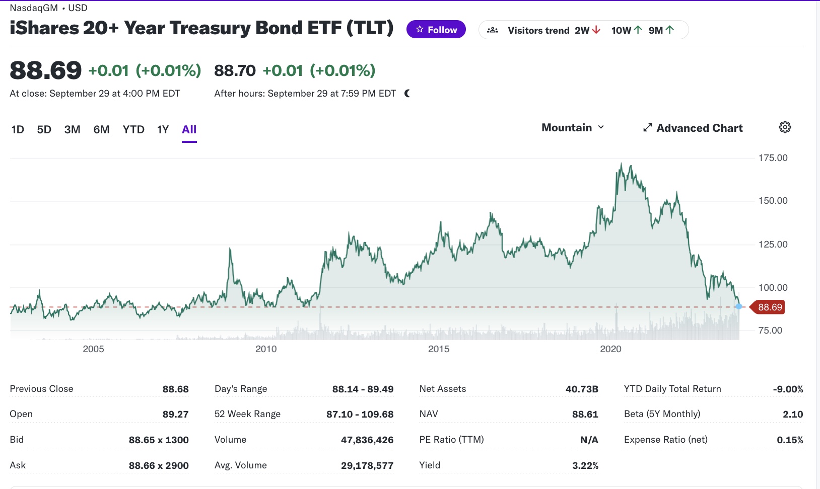 Today I’m going to discuss my investment thesis for TLT, the 20/30 year treasury bond ETF from iShares. I’m not affiliated with iShares (or its owner BlackRock) in any way and there are alternative ETFs that track the same bonds.