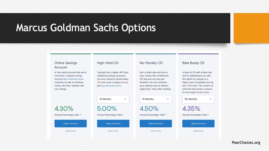 Here are the current options for yield in my Marcus Goldman Sachs account: