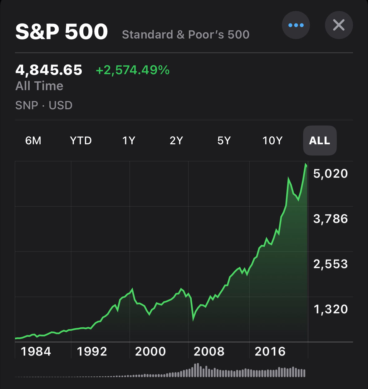 To quote myself, “The stock market allows everyone from a school bus driver, to a corporate lawyer, to me sitting on my couch in sweatpants to buy and sell pieces of the biggest, best companies in the world. Not many people fully grasp the magnitude of that. My resume can (and does) truthfully say that I’m a co-owner of every company in the S&P 500.”