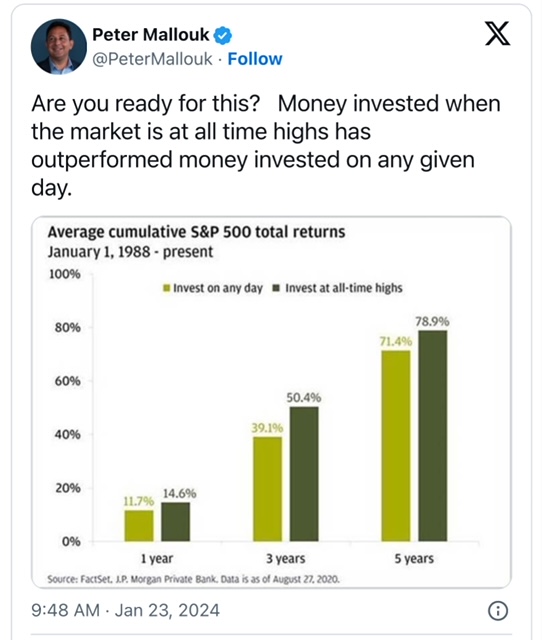 In fact, buying at all-time highs often results in better performance than off the highs: