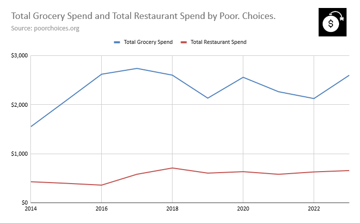 I’ve been manually tracking every penny I spend for the last decade so I have some annual food price data of my own: