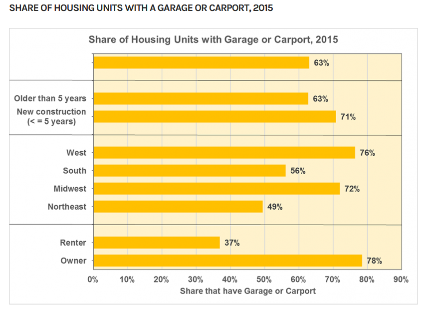 Of those 82 million homes, about 63% have a garage or carport: