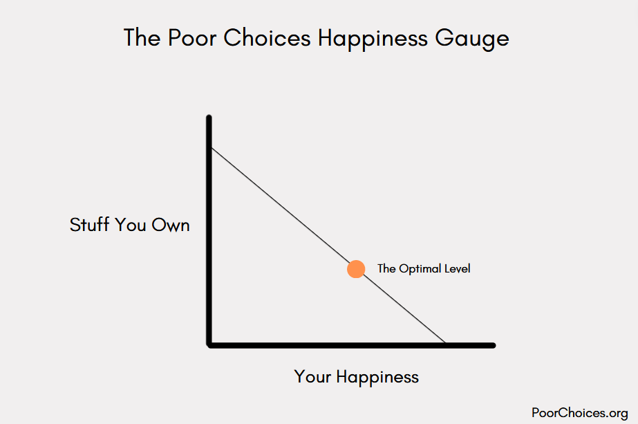 That’s how I landed on the optimal level shown above. Less stuff than the average person equals more happiness than the average person.