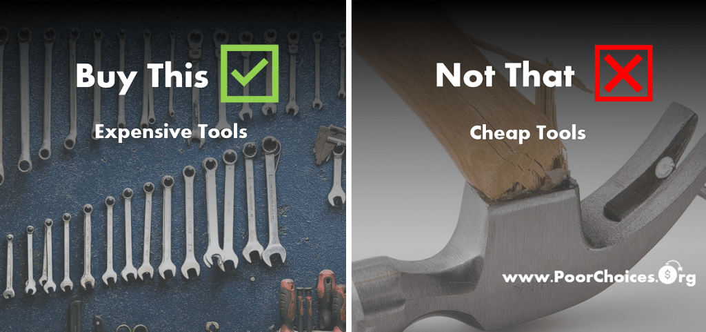 Expensive tools are almost always worth it. Even if you don’t get something top of the line with the bells and whistles, don’t buy the cheapest options or store brands. Cheap tools aren’t made to last and they can make any job twice as difficult by breaking, bending, or lacking some crucial feature. There’s an old saying, “Buy Cheap, Buy Twice“.