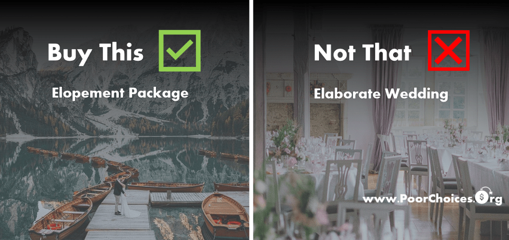My wife and I read our vows and exchanged rings on the coast of the pacific ocean, in a canopy of giant redwoods. Then we came home and threw a small reception in our hometown with 75 of only our most favorite people as guests. By my estimate, we spent about half of what a full wedding would have cost us and enjoyed it twice as much as we would have otherwise. We put the money we saved towards our house.
