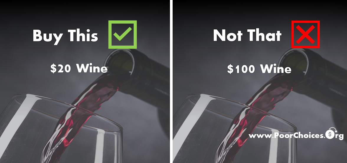 But notice I’m not advocating for a $5 bottle of wine. The really cheap wine stains your teeth and gives you hangovers due to the sugar content. $20 is the level at which the wine is almost guaranteed to be good. Plus, the label designs level-off in terms of quality at $20. And the label design is the only thing you should base your wine choice on anyways. At least that’s what I do.