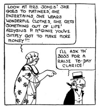 The phrase originates from a comic published in the early 1900’s called Keeping Up with the Joneses, created by Arthur R. “Pop” Momand.