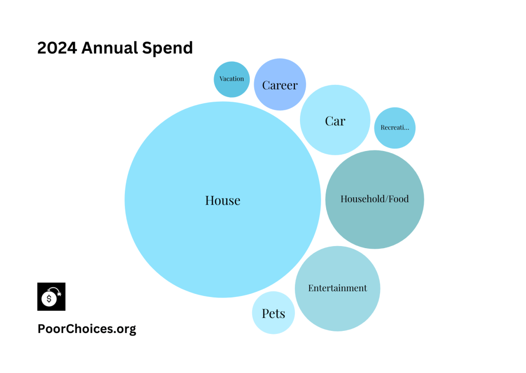 ***We added a third cat to the household with some unexpected vet bills. Pets are typically a smaller % of our total spending.