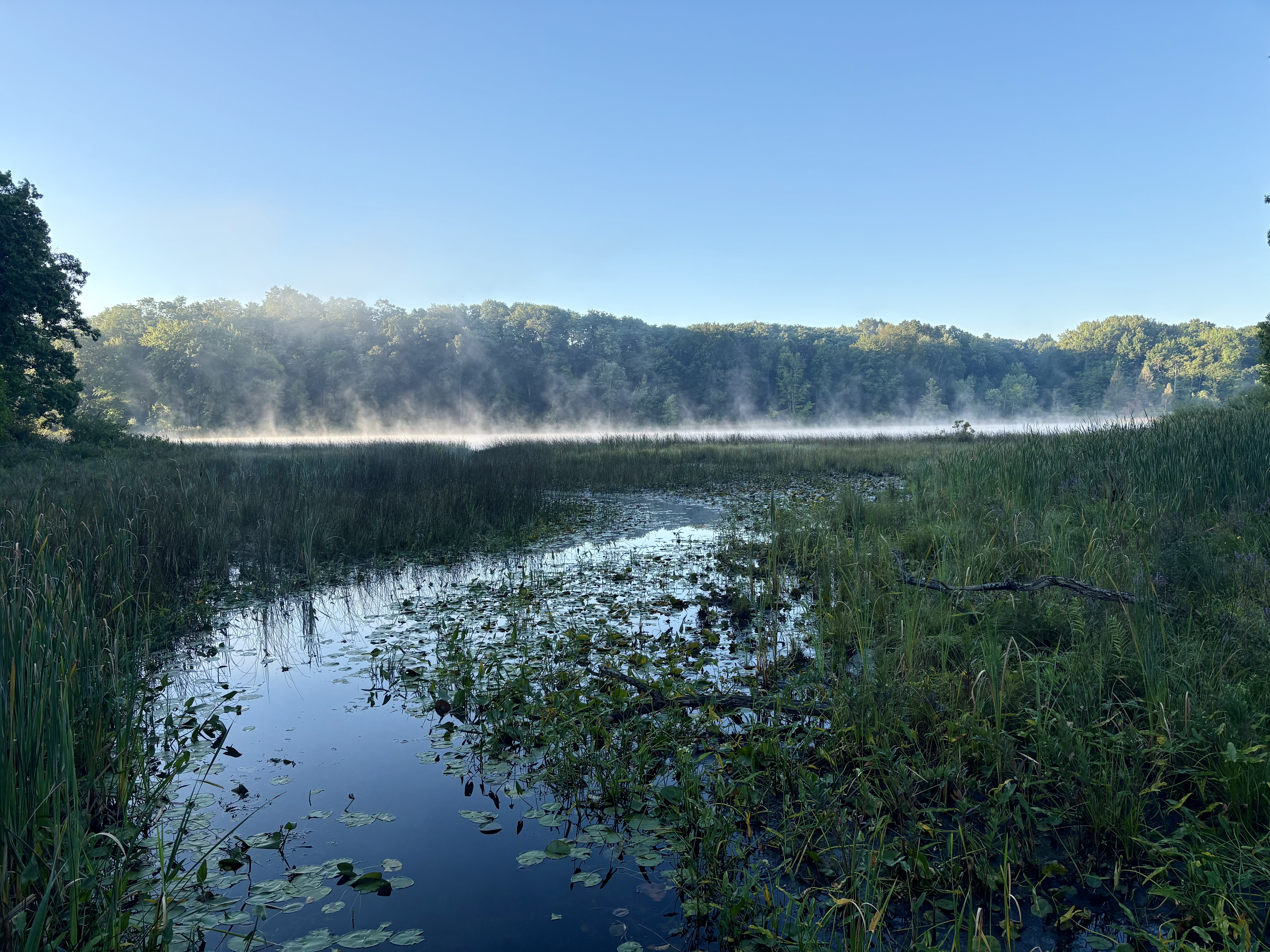 This morning I found myself hiking a relatively tame, local trail as the sun rose. Two miles in, a rest at a lakeside park, and two miles back out to my car.